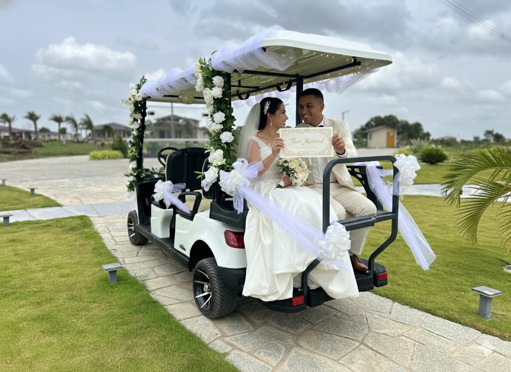 Wedding Package: Complete transportation solutions including multiple Elite Golf Carts for bridal parties, guest shuttles, and VIP services